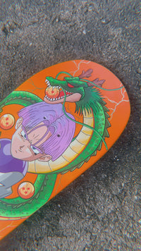 Materials: Blank skateboard with no grip tape, Golden Artist Colors acrylic paint, Posca acrylic marker, Molowtow acrylic marker, Gold Pen Touch, finished with gloss brilliant varnish.