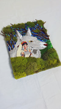 Materials: Wooden canvas, moss, twigs, glue gun, glue sticks, Posca acrylic marker, Micron pens, Acrylic Golden paint, finished with high gloss varnish