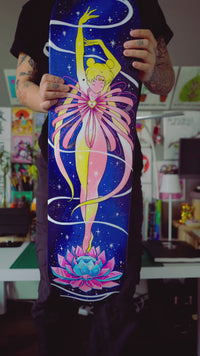 Materials: Blank skateboard, Golden Artist Colors acrylic paint, Posca acrylic marker, Micron pen, Golden pen touch, finished with high gloss brilliant varnish